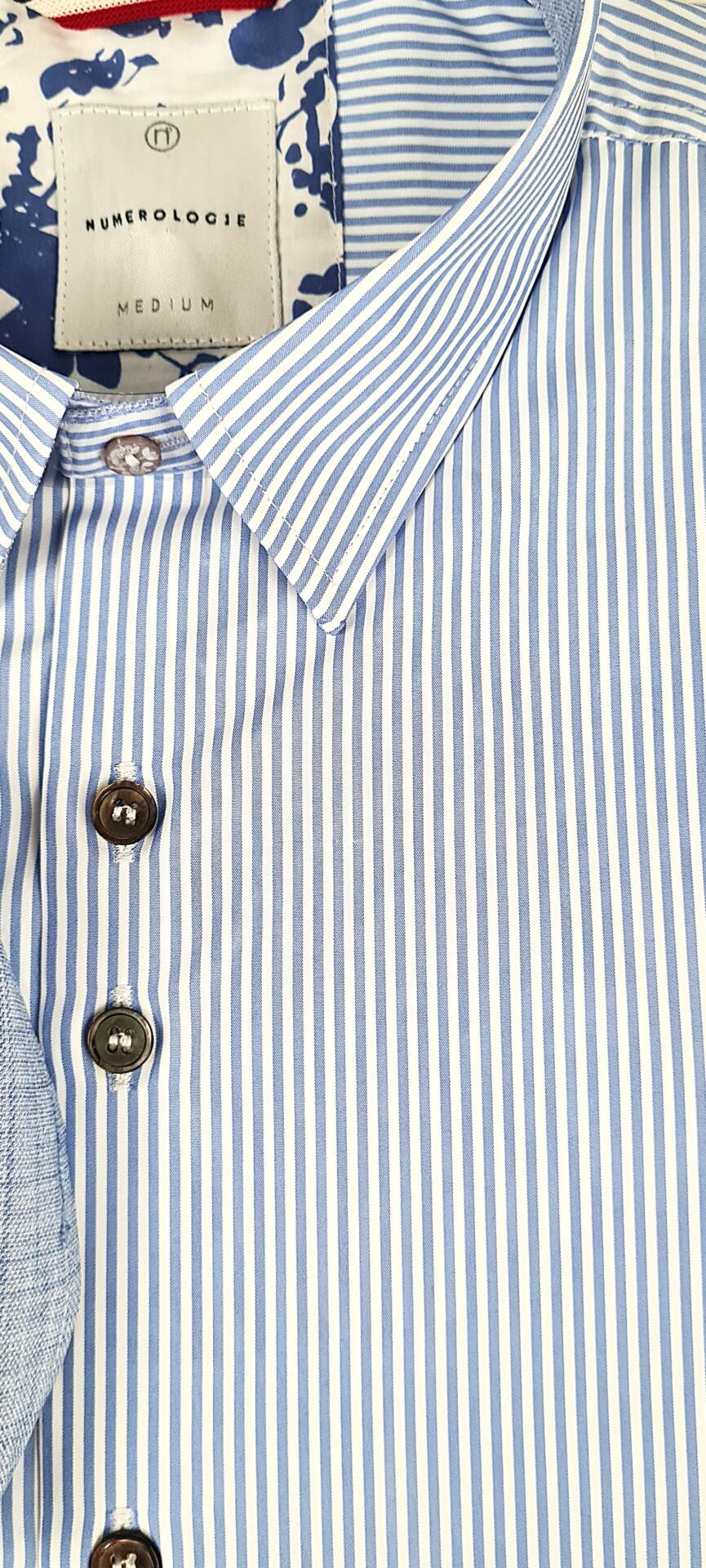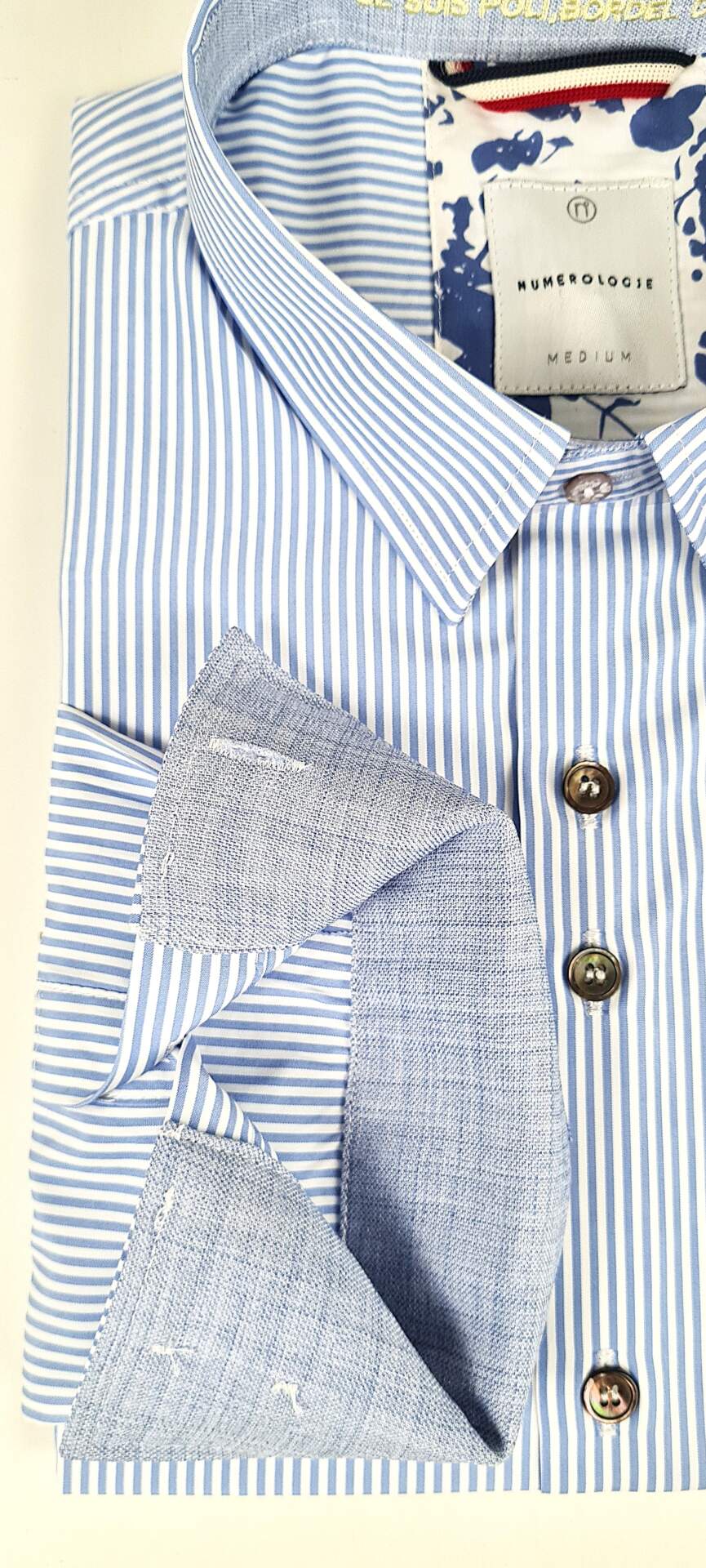 Chemise numérologie , avec tissus contrasté au poignet, et au col, forme slim fit.